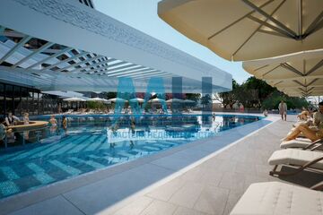 Для любителей водных развлечений на территории возводится SPA-центр и круглогодичный открытый бассейн с соленой водой. Для гостей разных возрастов предусмотрены игровые пространства и зоны активностей.