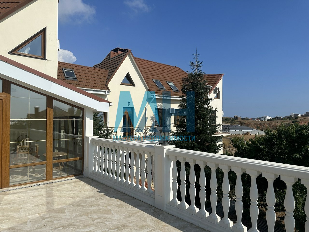 В доме есть видовые балконы и большая терраса с фонарями, новыми водостоками, открывающая невероятно красивые виды на мыс Ая и смотровые площадки Фиолента.