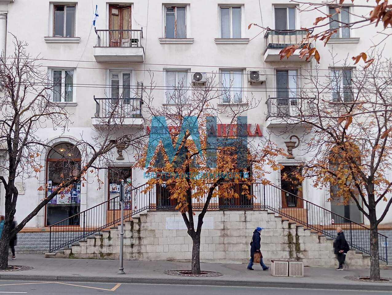 - Окна и центральный вход в помещение расположены в центре дома напротив остановки общественного транспорта: "БОЛЬШАЯ МОРСКАЯ".