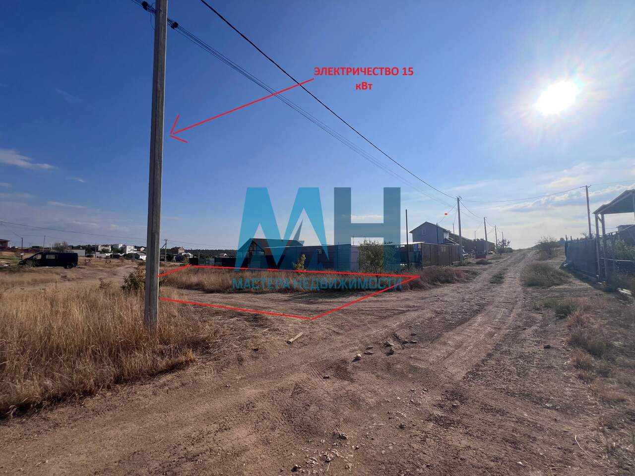 Коммуникации: Электричество (15 кВт на границе), вода — скважина