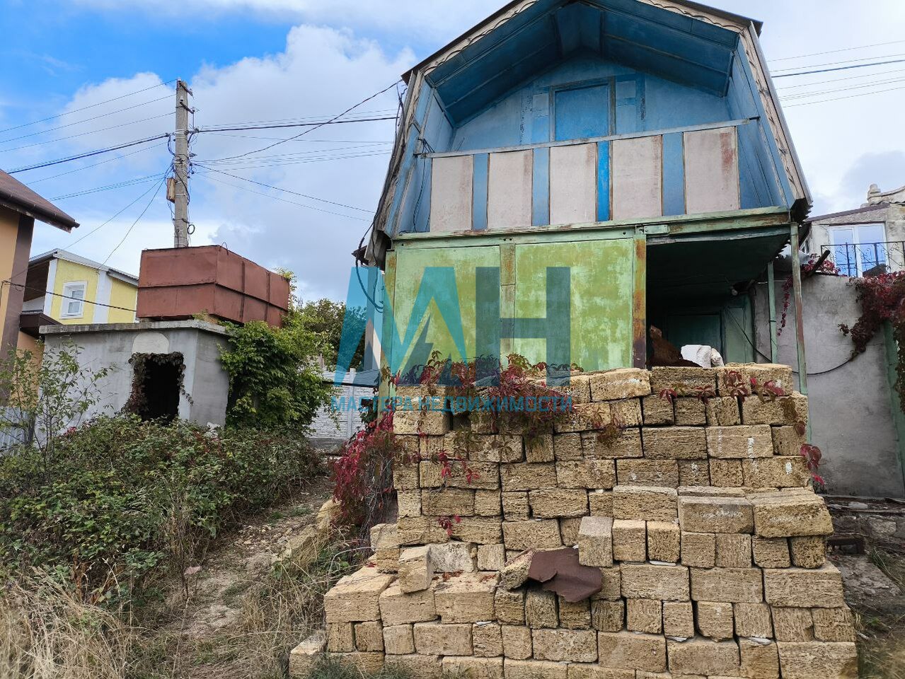 В угловой части имеется небольшое капитальное строение из ракушечника, которое можно использовать как подсобное при возведении нового дома и последующего использования в качестве вспомогательного строения.