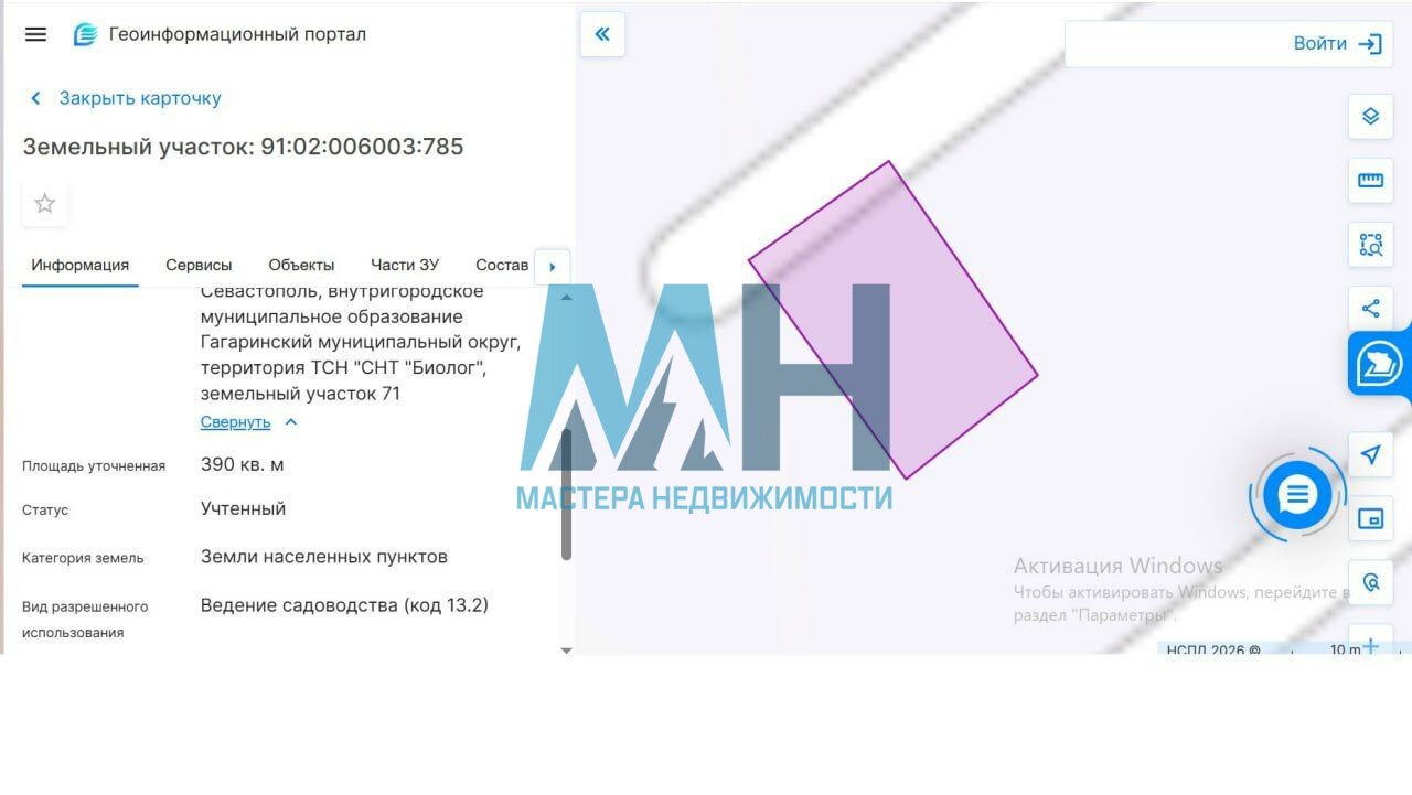 - Вид разрешенного использования: Ведение садоводства (код 13.2) — возможность построить дом и ввести его в эксплуатацию.